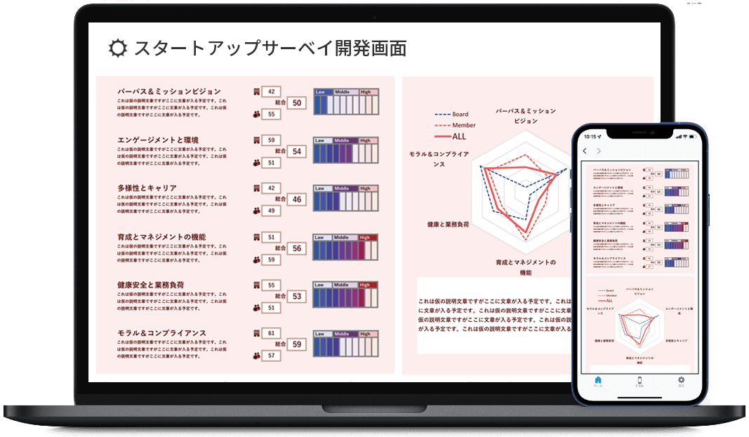今回のサーベイにお申込みいただくと、後日にサーベイ回答用フォームをお送りし、企業内でご回答・提出を頂くと簡易分析結果をご返信します。